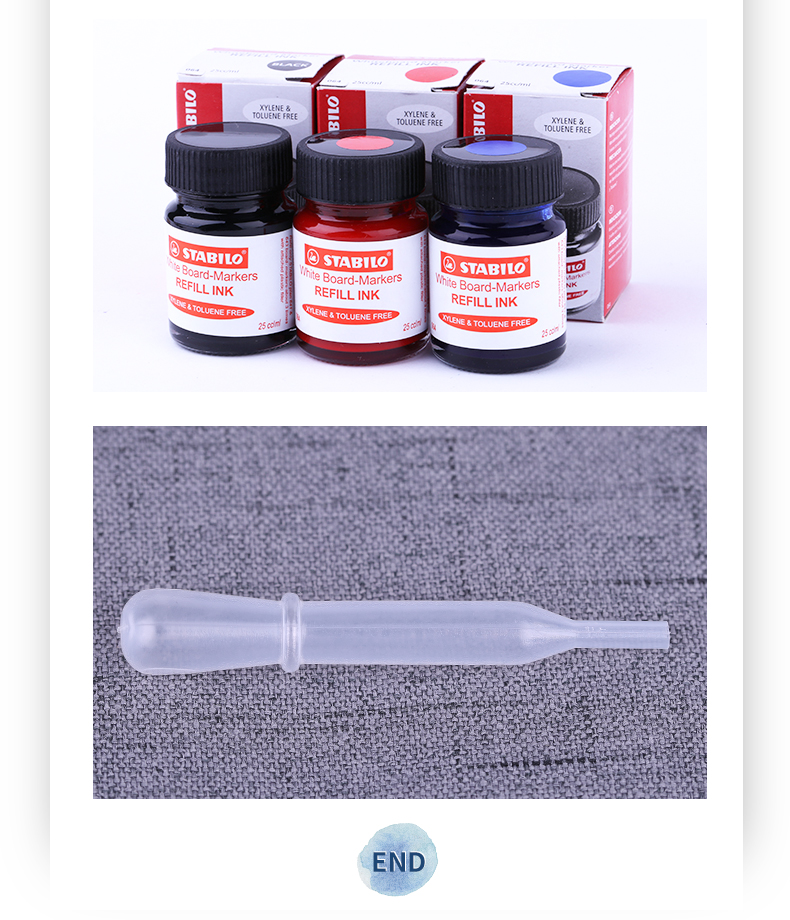 STABILO WhiteBoard 641/643 là công cụ lý tưởng cho giáo viên, học sinh và nhân viên văn phòng khi cần ghi chú hoặc trình bày trên bảng. Bút được trang bị mực châm dễ dàng, dung lượng 25cc, cho phép châm mực cho 6 cây bút với 3 màu lựa chọn. Xuất xứ từ Malaysia, sản phẩm chất lượng cao và độ tin cậy trong sử dụng.