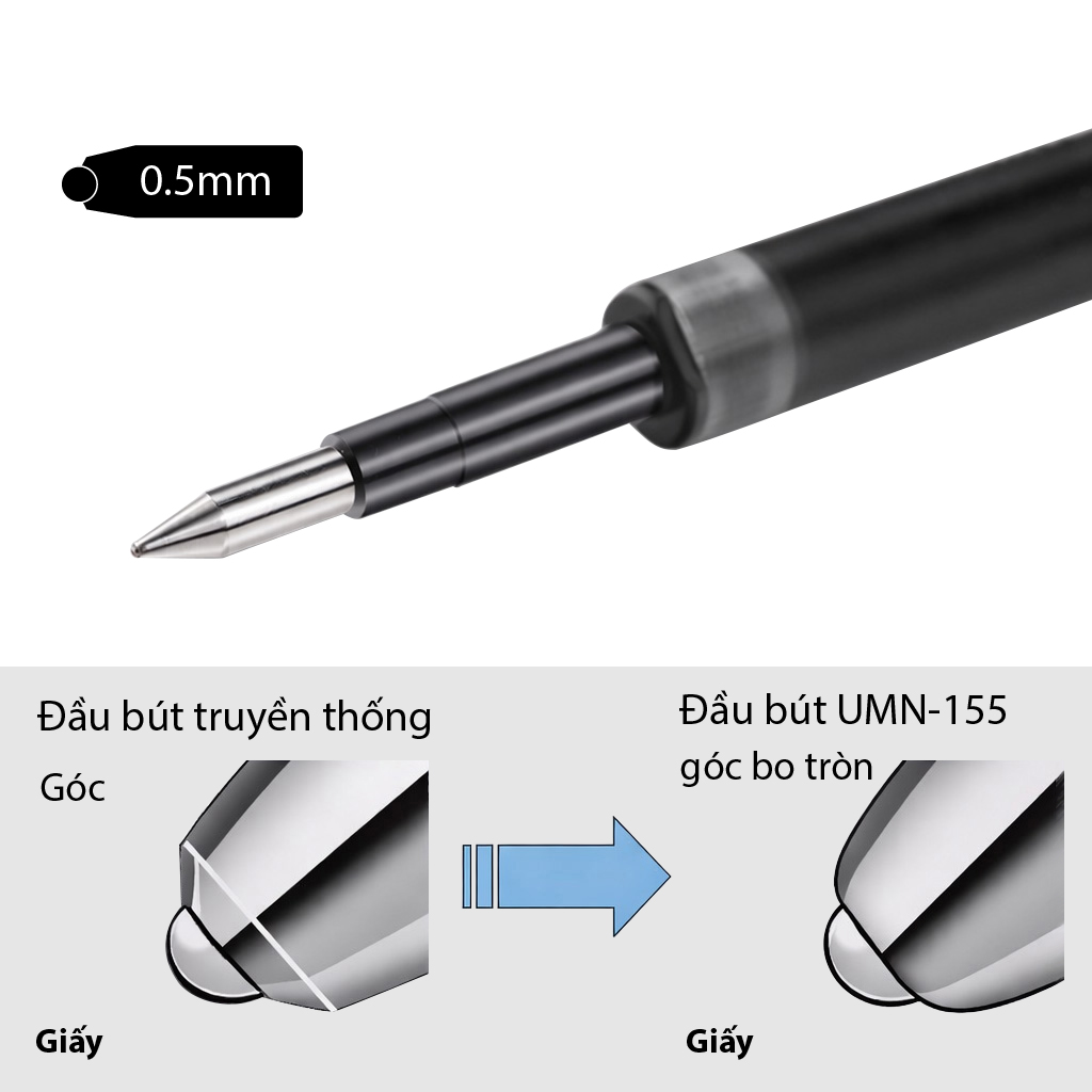 - Bút Uni-Ball UMN-155 là dòng bút gel đến từ thương hiệu Uni (Mitsubishi Pencil – Nhật Bản), nổi bật với chất lượng mực vượt trội, cho trải nghiệm viết mượt mà, đều mực và nhanh khô, không lem. Thiết kế dạng bấm tiện lợi, thân bút chắc chắn, hiện đại, phù hợp với nhiều đối tượng sử dụng.