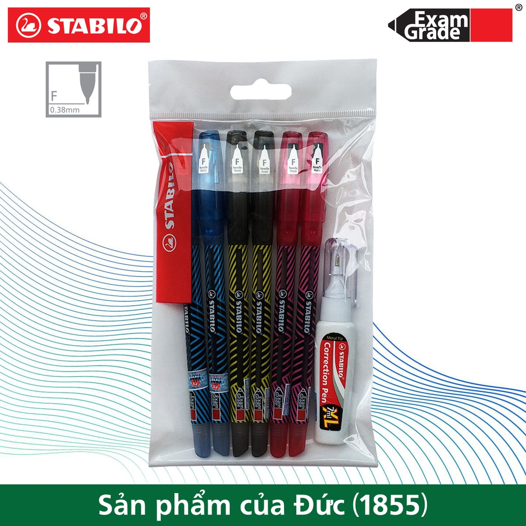 Bộ 6 bút bi STABILO Exam Grade BP587NF 0.7mm (2 xanh+2 đỏ+2 đen) + Bút xóa Correction Pen CPS88