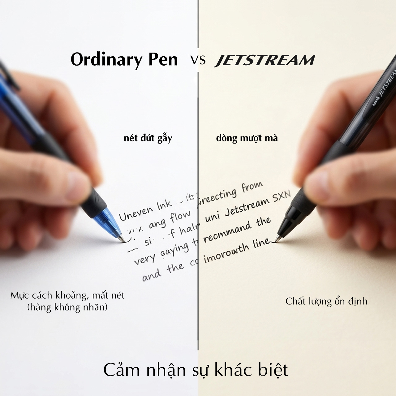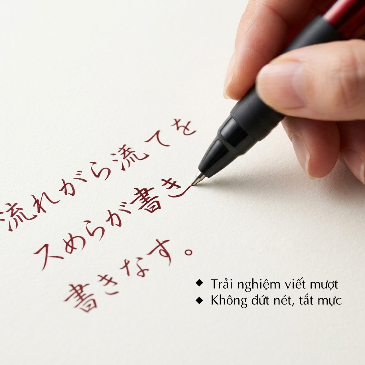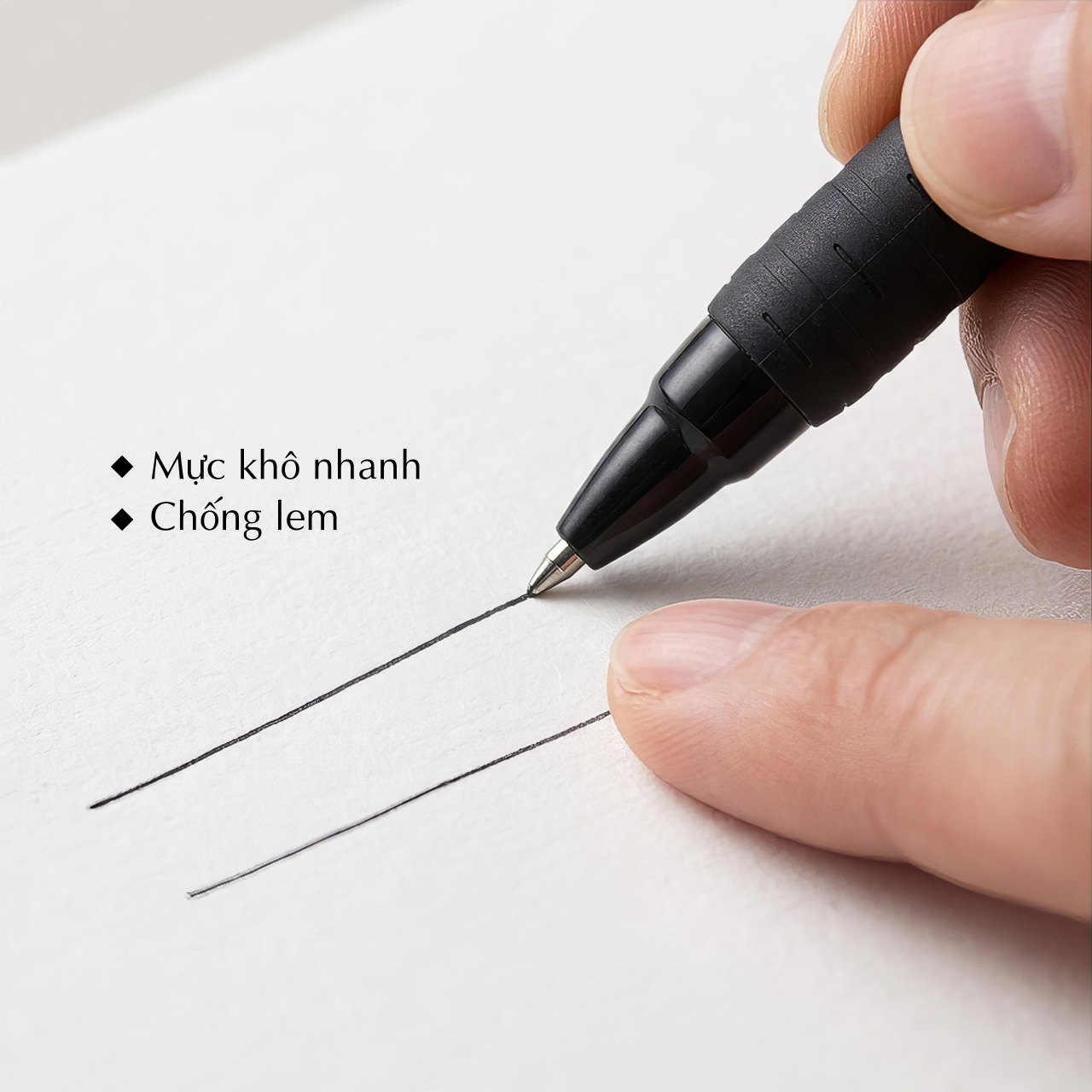 - Mực bi nước: Khô nhanh, chống nhòe, không lem – lý tưởng cho người thuận tay trái.