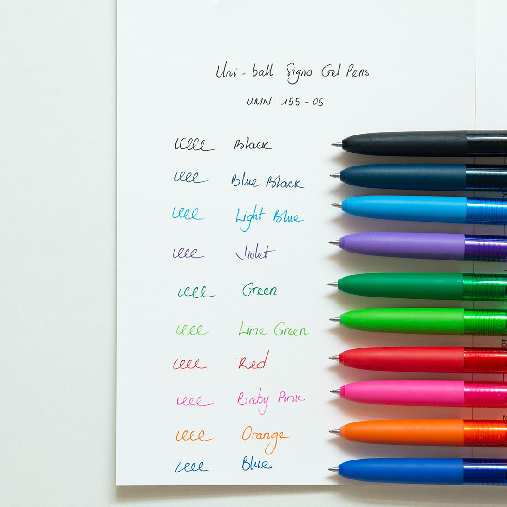 Mực: Mực gel Uni, không phai, không thấm nước
