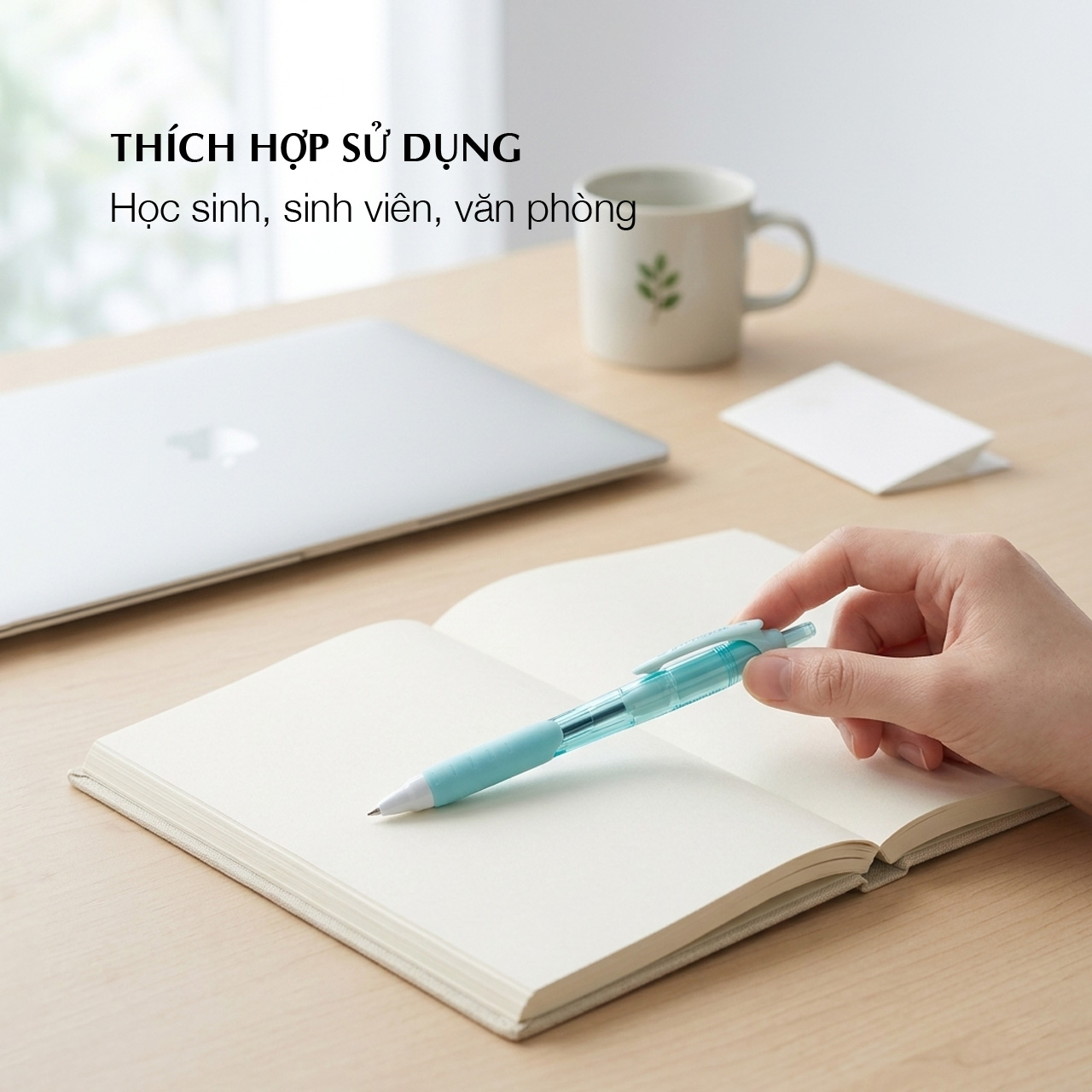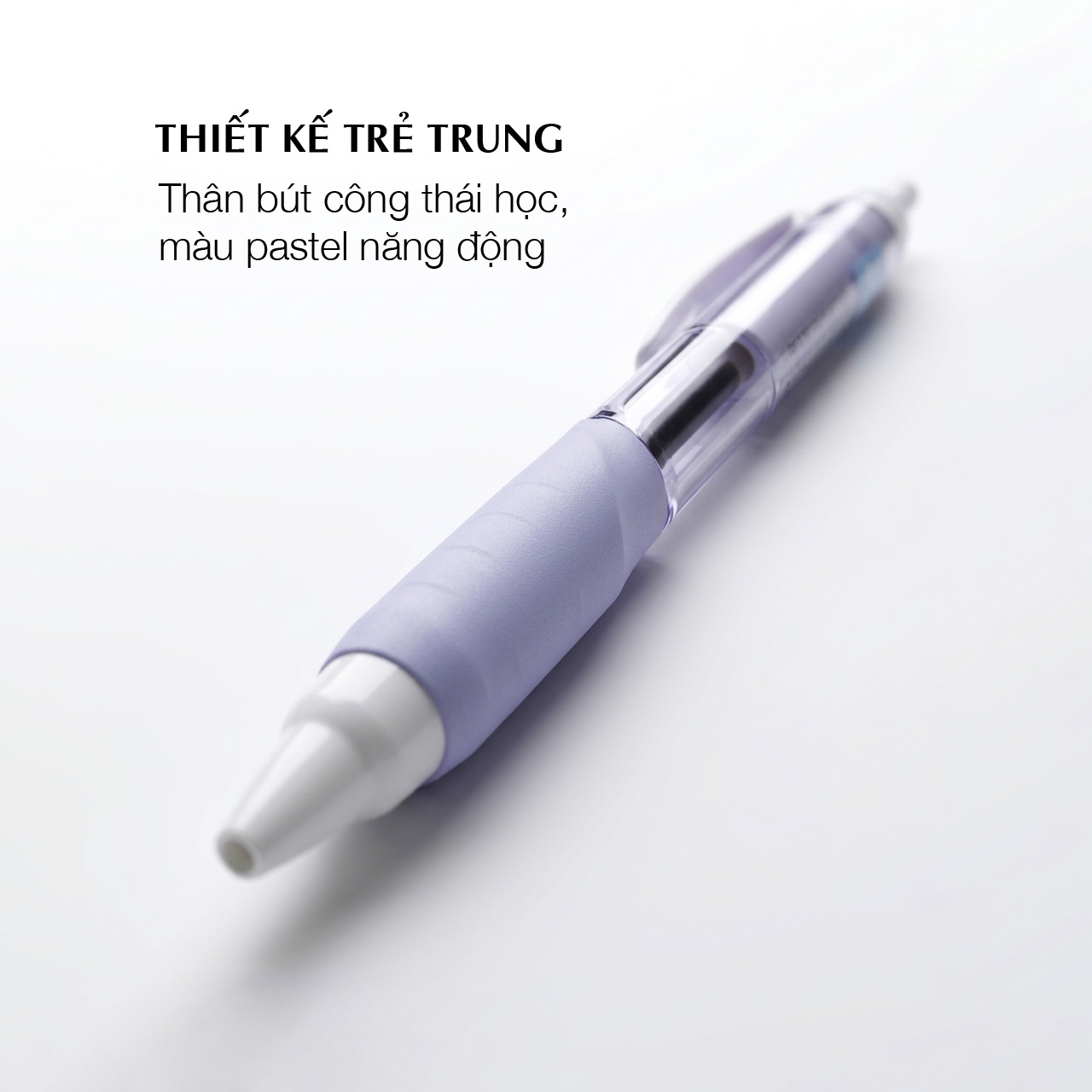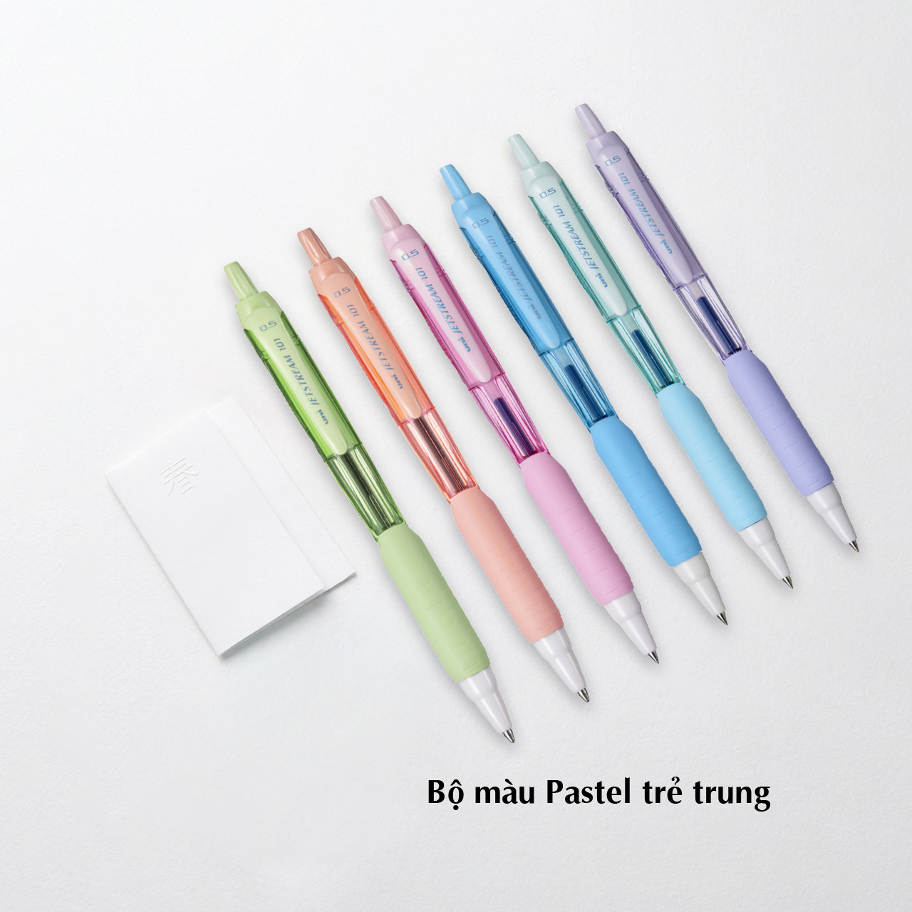 - Màu vỏ bút có 6 màu pastel: xanh lá, tím, hồng, cam, xanh dương, xanh nước biển.